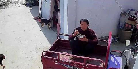 在小刘的印象中,父亲一直是乐天派,不管多困难都会笑着面对,每次在监控下也都是笑容满面,院子里吃饭没有凳子,他就坐在三轮车上。