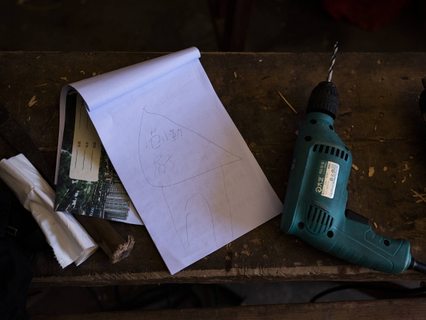 在范家干活的椅子上摆放着范小勤的图画本。