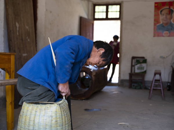 黄新龙的团队一共四个人,都是村民,其中有个女孩在外学过剪辑,他自己负责拍摄。每天早上8点,范家发会到黄新龙叔叔家的老屋做竹制品。屋子中央堆放着几根刚砍来的竹子,长椅上摆放着斧子、柴刀、标尺等常用的工具。