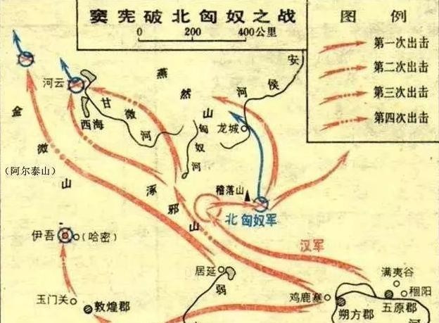 窦宪指挥大军就像指挥刺客一样,总是采用情报战的方法,通过详细侦察锁定北匈奴大军的具体位置后,悄悄接近突然出击。公元89年,窦宪遣精骑万余大破北匈奴于稽落山,单于逃走,窦宪追击匈奴各部出塞三千里登上燕然山,也就是今天外蒙古的杭爱山,刻石纪功,命中护军班固作铭。