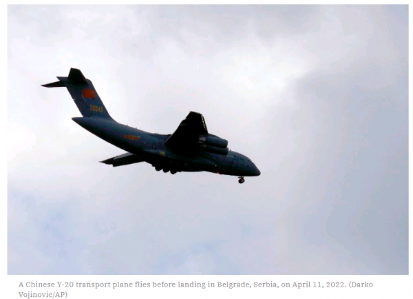 中国外交部发言人赵立坚11日在例行记者会上证实中国派出运-20大型运输机向塞尔维亚运送"常规军事物资"后,西方对中国空军的这次超远距离空运行动投入了极大关注。