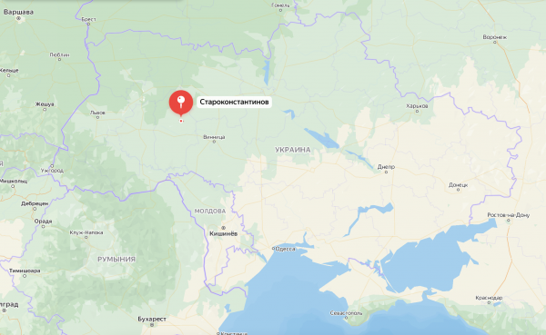 Yandex地图上赫梅利尼茨基州斯塔罗康斯坦丁诺夫地区示意图,该地位于乌克兰西部,直线距离首都基辅约250公里,俄军曾使用高精度导弹对赫梅利尼茨基州其他目标实施打击
