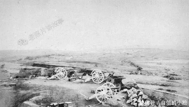被日军占领的清军杨峰岭炮台和被日军缴获的清军重炮