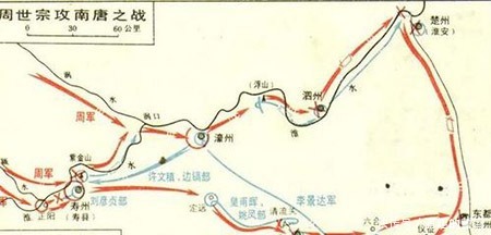 在挫败北汉的攻势后,柴荣又决意向南方诸国用兵。显德二年(955年)五月,后周大将向训、王景率军进攻后蜀,意在收复后汉灭亡前被其侵占的秦、风、成、阶四州,结果历经半年的时间,终于实现既定目标。在对后蜀"牛刀小试"便大获成功后,柴荣下一个攻击的目标,便是最大的劲敌-南唐。