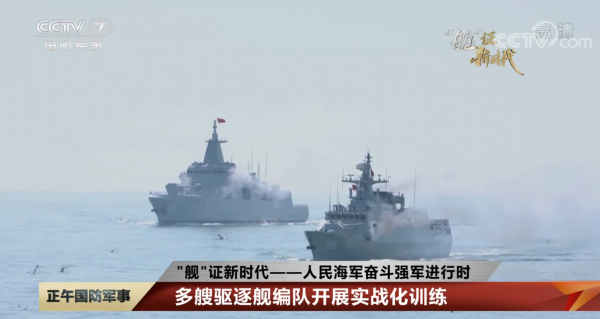 4月21日,CCTV-7的"正午国防军事"节目播出了新型舰艇参加实战化训练的新闻画面,刚刚入列不久的055型万吨驱逐舰鞍山舰、无锡舰参加实战化训练。这也是继南昌舰、拉萨舰、大连舰后,公开入列的第四、第五艘055型驱逐舰。