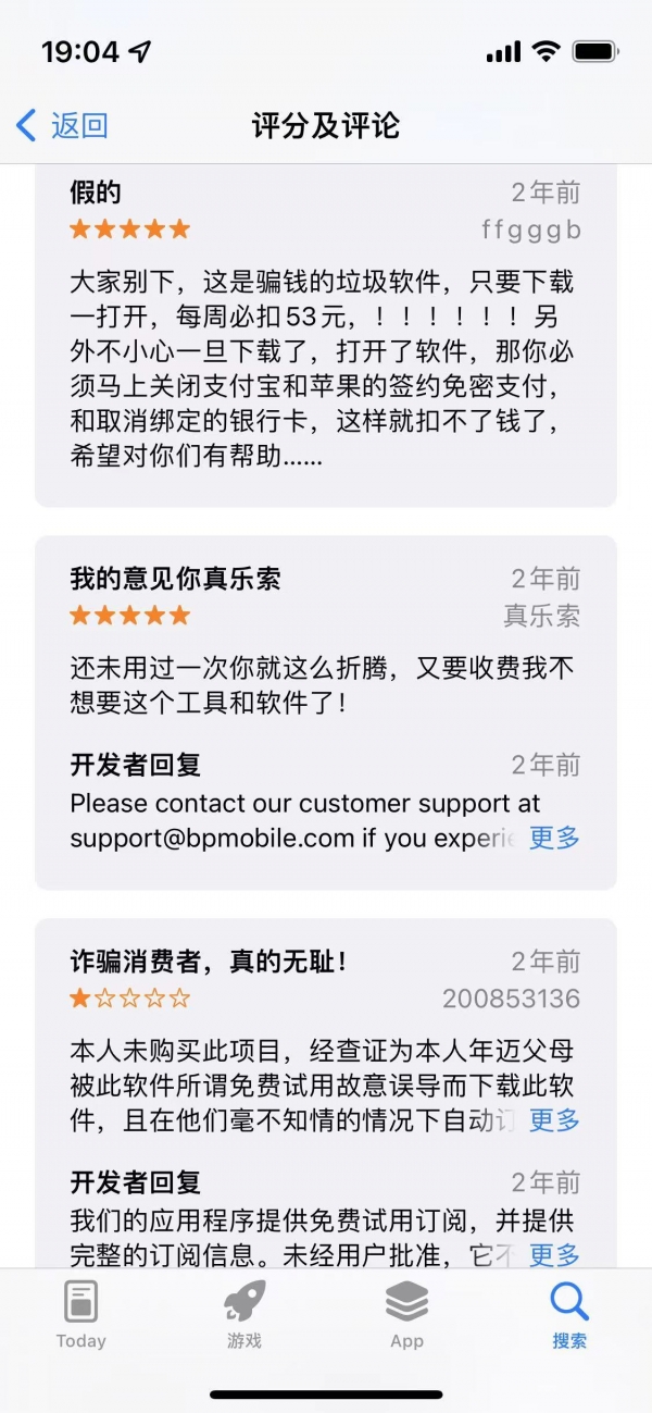 考虑到评价在留言时间未满3年前都会显示2年前,小雷猜测大多数被误收费的用户都是在iOS13大范围推送前订阅的Smart Clerner,然后在收到银行扣费信息后才注意到。不过新闻中的长辈订阅Smart Clerner的时间是2020年11月,理论上iOS14已经大面积推送,不太可能还存在iOS13之前的"忘记取消订阅"的情况。