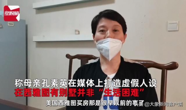 视频中,荣婷称其母亲孔素英曾伙同他人逼其签上百份空白卖房合同,非法转移上亿元房款。并公开曝光孔素英持有美国绿卡,在西雅图有别墅,不存在生活困难之说。荣婷还表示,其母亲在媒体上打造虚假人设,所说内容均不属实。