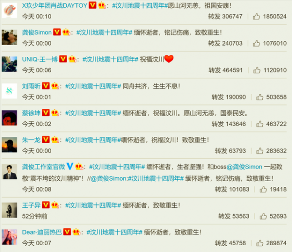 没有人会预料到天灾的降临,不过当灾难发生过后,无论是娱乐圈的明星还是我们普通人,都会尽自己的努力去帮助那些有需要的人,汶川地震已经过去了14年,让我们缅怀逝者,致敬重生。