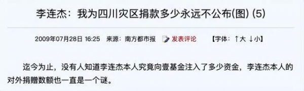 李连杰当年通过壹基金也是第一时间对汶川捐赠善款,不过比起那些公开数额的明星,李连杰却对外表示永远不会公开对汶川捐赠的具体金额,而这番操作也让人怀疑李连杰的资金去向,面对疑问李连杰从未回应过,但是在地震发生之后,李连杰确实亲自前往灾区亲力亲为,为灾民搭帐篷。