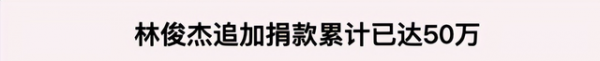 在捐款方面林俊杰显然是不如周杰伦的,不过当年捐款累计数额也达到了50万。同时因为地震的消息,希望通过自己的音乐传递给灾区一些希望,于是就两天没合眼,写出了《爱与希望》这首歌,并且在2009年拿下了金曲奖。