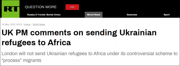 据今日俄罗斯(RT)当地时间5月12日报道,英国首相约翰逊当天表示,尽管英国政府达成了一项将非法移民送往卢旺达的新协议,但逃离俄乌冲突的乌克兰难民将不会被遣送至那里。