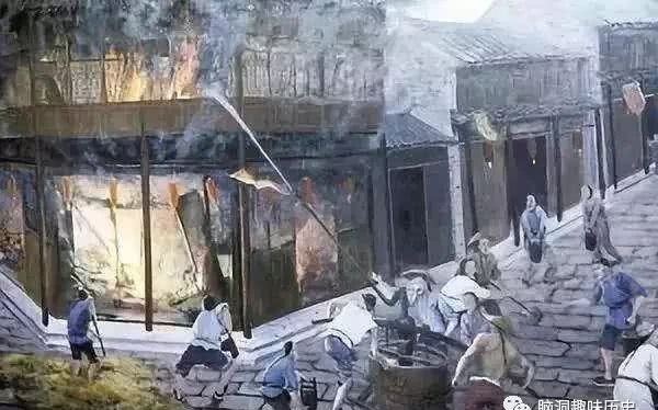 宋代的"消防车"很简陋,就是毛驴拉着水桶到火灾现场,再借助唧筒直接喷洒水灭火,这样做的好处是一次性可以运输的水量远多于人力搬运,还可以支持多人喷洒作业,使得灭火效率更高。