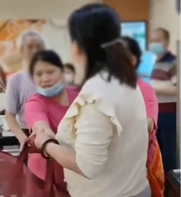 至此,大爷也不敢再轻易靠近女子,为女子打了大爷后也似乎出了气,在两名收银员阻拦下,也顺势平静了下来,只是眼神还气冲冲地盯着大爷。