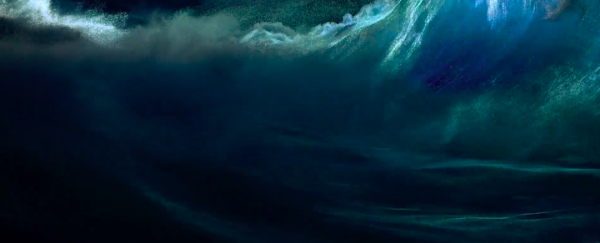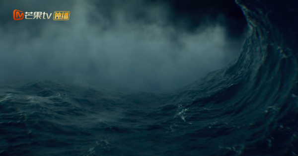 首先就是预告片的开头,海面波涛汹涌,卷起一阵海浪。