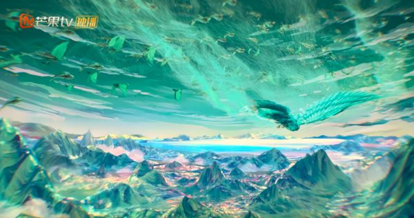 当然一个海浪也不足以说明什么,接下来《乘风破浪》的预告中出现了许多次青鸟元素,尤其青鸟从画面左上角俯冲,冲向远处的山峰,乍一看还是很惊艳。