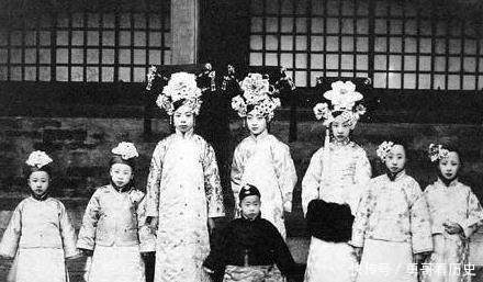 而16岁这一年,因婉容端庄秀丽,便被选入宫中,成为溥仪的皇后。上图便是她入宫不久,与溥仪弟弟妹妹和皇妃文绣的合照。从图中可以看出,婉容的颜值果然是后宫中最出类拔萃的。