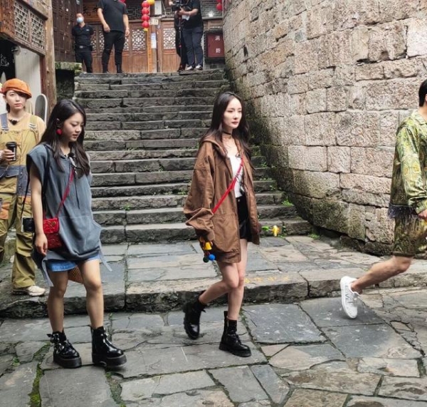 5月30日,网友偶遇杨幂,李斯丹妮,赵金麦,张凯丽,等人现身在湘西的芙蓉镇,原来他们是在一起录制综艺节目《花儿与少年》,所以吸引了不少的路人前来围观。