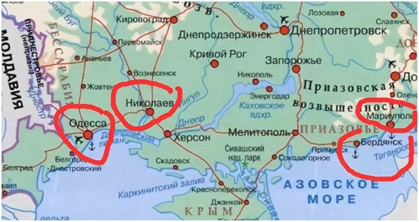 从地图上看以看到,从右向左是依次是马里乌波尔、别尔江斯克、尼古拉耶夫和敖德萨。也就是说乌克兰战略出海口其实只剩下敖德萨一个,尼古拉耶夫实际上是黑海造船厂所在地。