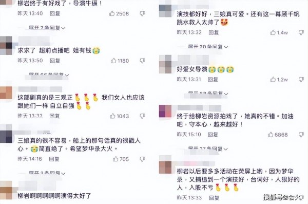 剧组放出这段花絮之后,也引来了许多网友在评论区里留言。有网友说柳岩终于接到好剧本了,希望柳岩之后也能越来越好。还有网友说就是因为看了这段戏而爱上柳岩,因为演技好,台词也好,是个宝藏女孩,看来许多网友都通过这场戏认识了柳岩。