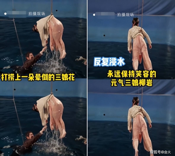 原标题:柳岩落水戏花絮曝光!反复浸水全身湿透,空中吊威亚头部全程朝下