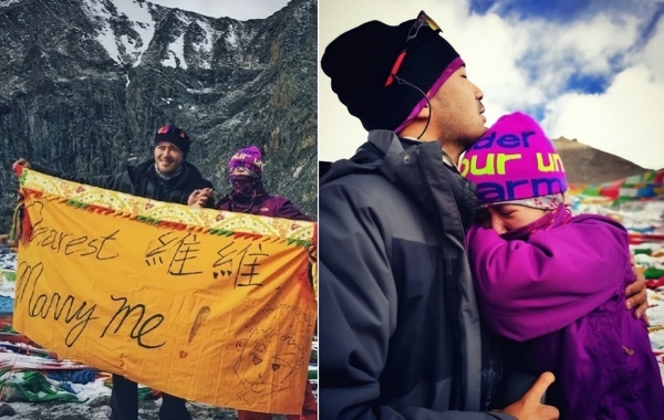 谭维维和老公陈亦飞疑似是因戏生情,两人在剧版的《失恋33天》相识,之后便多次被拍到同框出现,谭维维大方承认了恋情。不久后,陈亦飞在高原上举着旗子向谭维维求婚,这样浪漫的场景让谭维维感动得流下了热泪。
