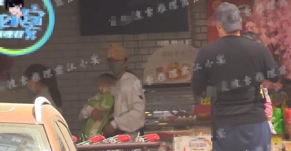只见谭维维抱着儿子蹲在路边等待老公,她亲昵地抱着孩子,母子俩都戴着口罩,看得出谭维维防护意识非常强。