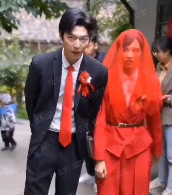 虽然新娘的举动有些不分场合,但新郎也没必要全程冷脸,如果不是两人胸前的大红花,搞不清状况的还以为他在参加葬礼。
