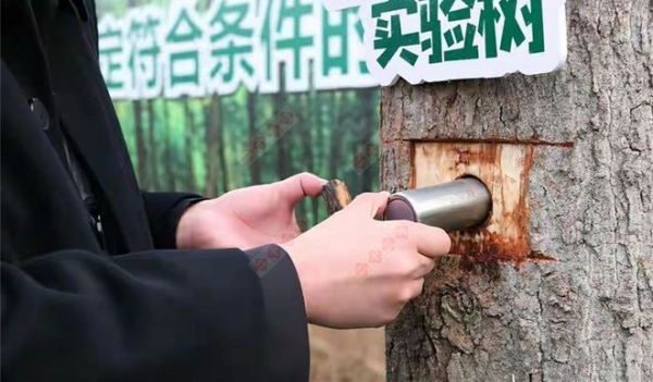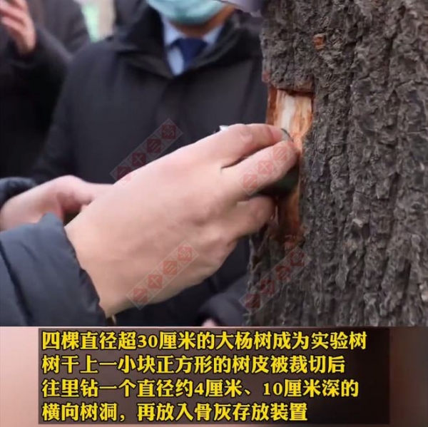 寓意是让逝者的"生命之树"能够常青,把骨灰植入树干之后,再用比较科学的方法来让