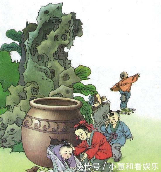 司马光却镇静自若,不慌不忙地搬上一块石头,朝着水缸砸了过去,在一番暴力之下,这个水缸破了个大洞,小伙伴就此得救。