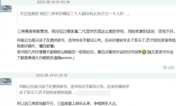网友们开扒何超莲学历的同时想到这件事,还觉得相比较何猷君所在的四房以及拿下公司主控权的二房,何超莲所在的三房似乎真的在各方面都有所欠缺。