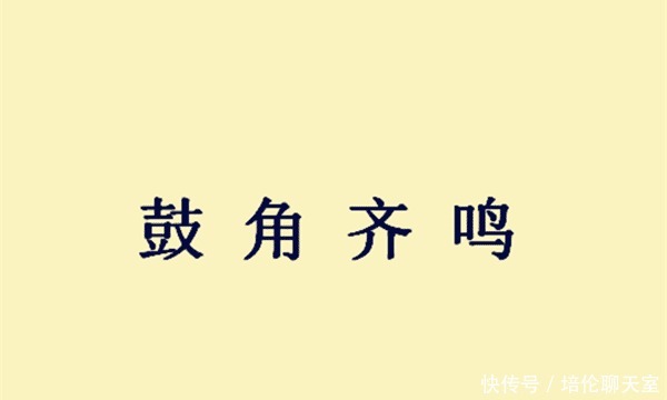 本文要介绍的成语,是文中提到的"鼓角齐鸣", 意为战鼓响,号角鸣。形容军队出击时的雄壮阵势。这也是由《三国演义》作者罗贯中所首创的一句成语。