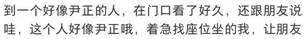 据现场网友透露,她本来是出门吃宵夜,在店内看着一个非常像尹正的人,因为对方太朴素导致她一度不敢认。后来在仔细观察下才确定照片中的长发男人是尹正。