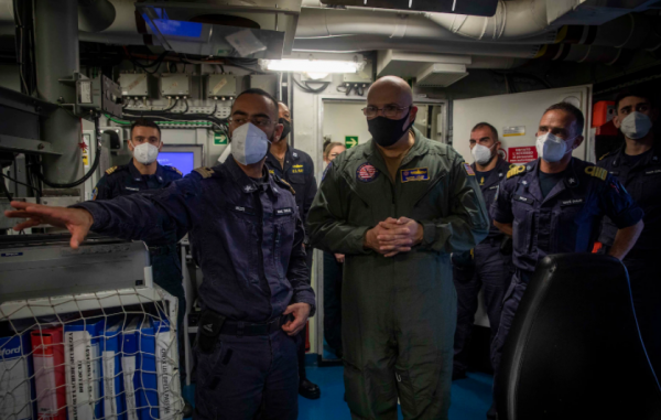 图:美意两国海军军官进行交流
