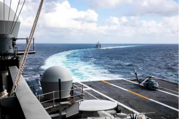 图:2022 年 6 月 5 日,"乔治·布什"号航母打击群在海峡过境培训活动中穿越大西洋。