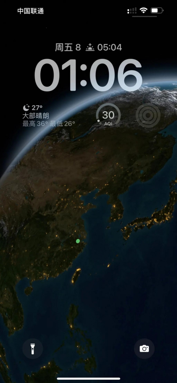 iOS 16 中新增的天文壁纸在这两个新版本中也得到了优化。在编辑壁纸时,系统会通过一个小绿点来显示用户当前在地球上的实时位置。另外,锁定屏幕上的小组件不再会遮挡这个壁纸中的地球,地球的位置会根据锁定屏幕上是否有小组件来调整上下的位置。