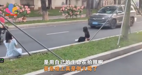一名女生甚至把双腿伸到了车道上,只是看着都心里捏了把汗。网友看后纷纷表示:这是在用自己的生命在拍照啊!哪个司机要是碰上真是倒了大霉!