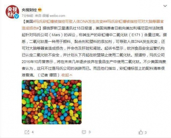 (原标题:美国玛氏彩虹糖被指控可对大脑等器官造成损伤、及可致人体DNA发生改变)
