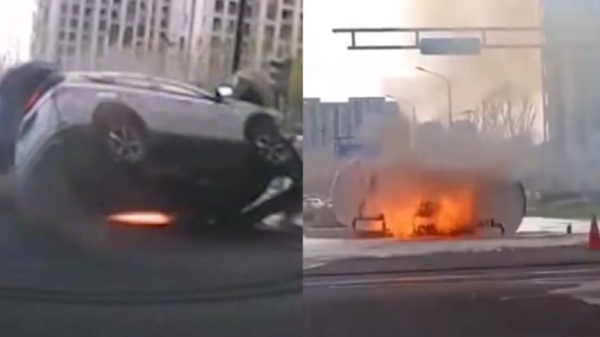 随后现场燃起大火,据杭州交通918消息,火势已经得到控制无人员伤亡。对此网友表示:SUV应该抢黄灯吧。