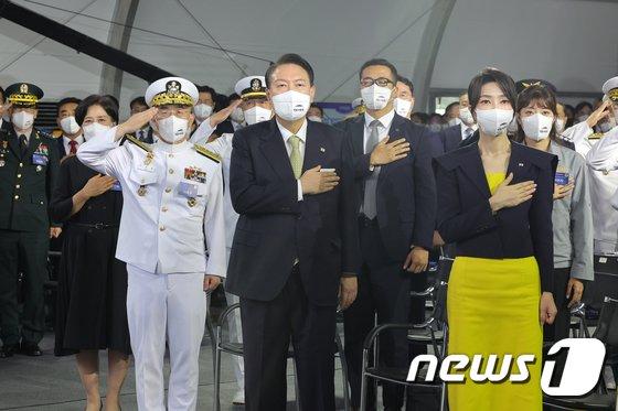 韩国总统尹锡悦与夫人金建熙出席下水仪式 图片来源:韩国News1新闻