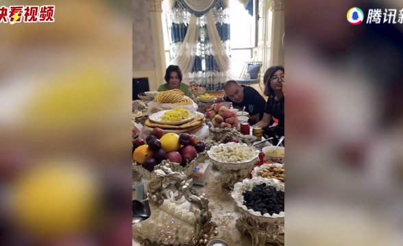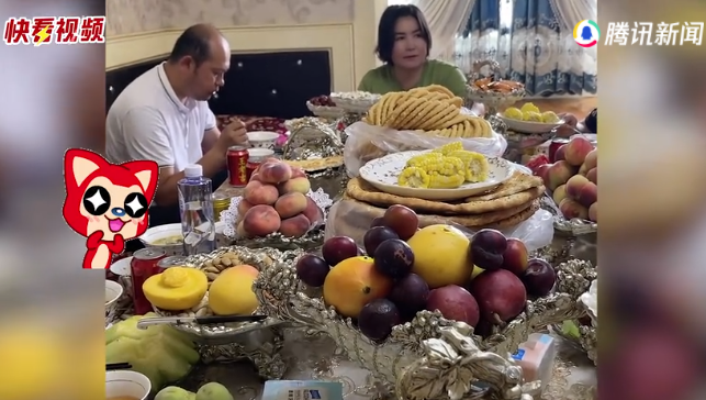 近日,新疆。女子第一次去新疆邻居家做客,一眼望去招待客人的桌子非常大,上面摆满了各种干货零食水果。