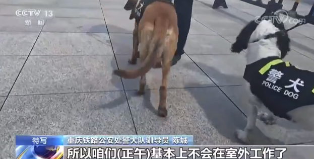 @央视新闻 消息,"闪电"是重庆的排爆警犬。现在天气炎热,却正值暑运高峰,"闪电"正坚守岗位保障铁路安全。犬通过舌头散热,但"闪电"要闭着嘴嗅闻进行工作,每20分钟就要休息补水防中暑。地表温度高时或接近60℃,即便避免了正午出外勤,它也常被烫到跳脚。"无言的战友",辛苦了!