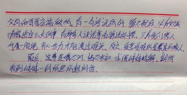 他说给妹妹写信的目的,也是希望能得到谅解。