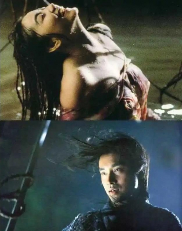 同东方不败或神龙教的龙儿比,林青霞似乎和张国荣更来电一些,二人的对手戏收放自如,如行云流水般让人痴醉。那段密林山泉间的欢爱,透着光的朦胧和放肆,至今可谓经典。