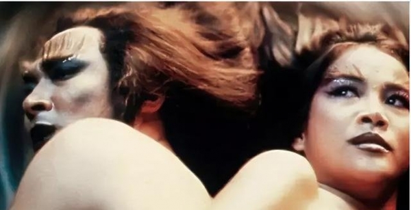 当年看到连体的姬无双在电闪雷鸣之下裸露的是血肉相连的两具躯体,丑陋恐怖,女的狂笑,男的哀嚎……男姬无双又是个情种,非练霓裳不要,爱不能爱,恨又恨不了,只能摧残自己的身体才会好过一些。