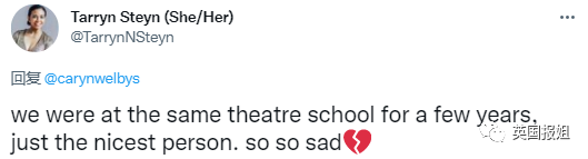 "我们在同一所戏剧学校上了好几年,她真是特别特别好的一个人,难过。"