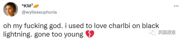 "我的天哪!查尔比演《黑霹雳》的时候,我特别喜欢她。离开得太早了。"