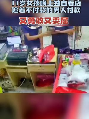 9月7日,广东清远。两个大男人见大人不在店里,就欺负一个11岁大的小女孩,其中一个拿一条烟和四瓶水,合计116元,拎走让另一个给钱,另一个只付自己买的一盒烟18元,然后也走。