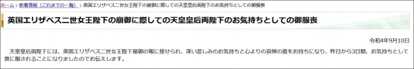日本天皇夫妇和上皇夫妇将服丧3天 宫内厅网站截图