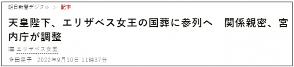 (观察者网 讯)据《朝日新闻》9月10日报道,相关人士透露,日本政府正在协调德仁天皇出席英国女王伊丽莎白二世国葬的事宜。另据日本宫内厅当天发布的消息,德仁天皇夫妇和明仁上皇夫妇将于9日起服丧3天(喪に服さ)。
