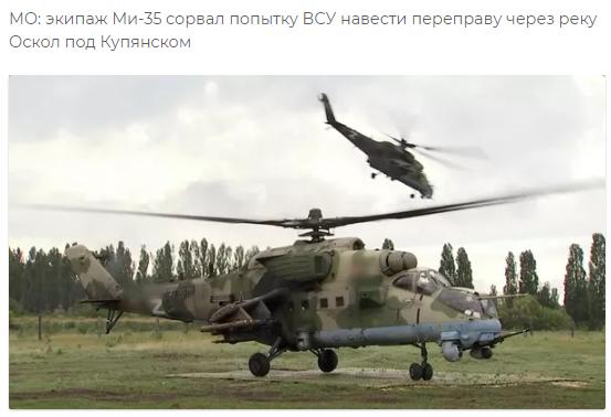 俄国防部说:"在报告了暴露的敌人行动并评估了情况后,直升机机组人员用火力打击了敌人。阻止了乌军建立渡口的企图,从而挫败了敌人向俄方防御深处挺进的计划。"